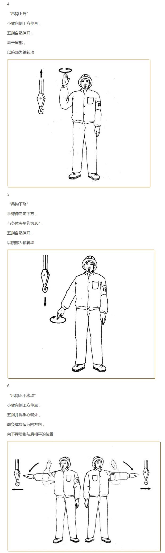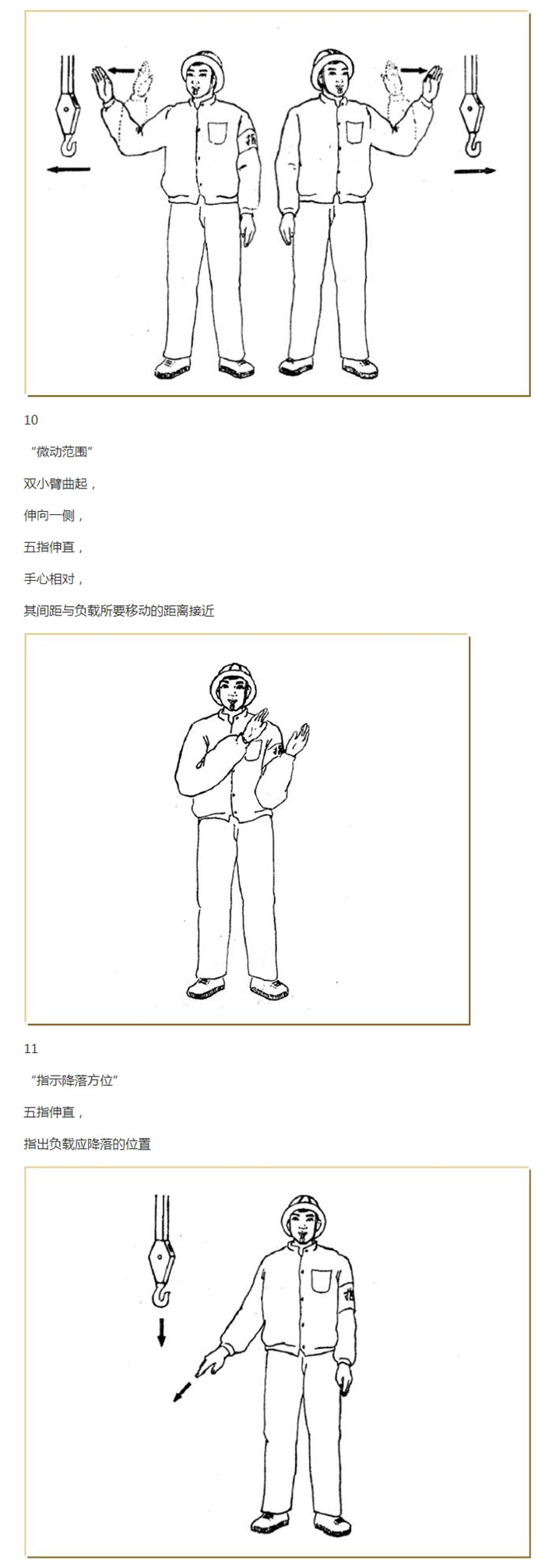 環(huán)鏈電動(dòng)葫蘆吊裝作業(yè)指揮手勢視圖解析: